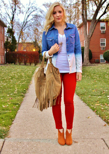lovely red jeans! I have wanted red jeans for like 2 years, but never get around to buying them. they look great. :)